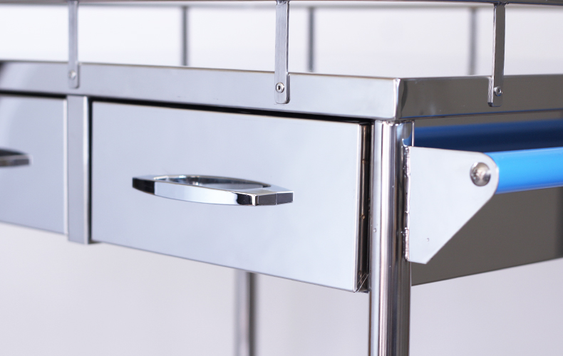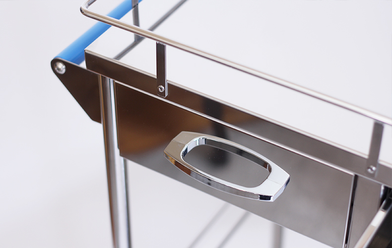 両側押し手付きの2段回診車です。
